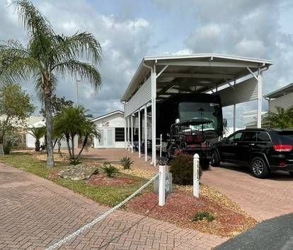 Price reduction on this fantastic location for a home base or season. Located in the luxury Class A Motorhome Regal Pointe section of Deer Creek RV & Golf Resort, this North/South (approx. 1/4 acre) corner lot features brick pavers, large port, 50 amp RV hookup service, water and sewer, separate irrigation from a new well (which is huge benefit) and a carriage house along with a shed. Back of property is sodded and lends itself to a great place for your fur baby to play in the grass. Utility shed has a washer/dryer, refrigerator 1/2 bath and plenty of shelving for storage. There are two outdoor storage cabinets at the back of the utility shed. The Carriage House has been renovated with new floor joists and flooring to compliment this great space. Carriage House boasts a bar with seating, pull-out sleeper sofa, ceiling fan, A/C and tons of personality to make it an ideal hang-out or sleep space. The lot also has gotten a total refurbishment with new sod installed up to fence line at the back of the lot, which gives you a wonderful green space to enjoy. This lot also affords you the opportunity to add on to original buildings or build your dream casita. Deer Creek is a golf cart friendly community with many amenities and activities including a main clubhouse with large pool, hot tub, tennis, pickleball and shuffleboard courts and outdoor Tiki Bar. We also have Greenside Grill for your dining pleasure as well as Greenside Deli on lower level for snacks or ice cream. Great places to go if you're coming off the golf course. Speaking of golf, enjoy our signature 18-hole executive golf course. Regal Pointe community also has its own clubhouse with pool, hot tub, large community room, workout facility, laundry center and men's/ladies' locker rooms. Deer Creek is well situated with easy access to banks, shopping, restaurants and approximately 30 minutes from the theme parks. Orlando International Airport is less than a 40minute drive away. Call to schedule your appointment to visit this very unique property within Deer Creek RV and Golf Resort. Oh, did I mention great neighbors to boot?!